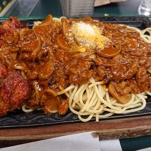 五稜郭タワーの目の前にあるラッキーピエロ。比較的大きなお店ですが、20時を過ぎても混雑。サラリーマンに混じって地元の高校生が多数利用。オムライスを注文したところ、30分かかるとのことで断念し、スパゲッティに変更。鉄板の上に乗ったミートスパゲッティは思ったよりも本格的。鉄板の上でジューッと焼ける音と香ばしい香りはたまらない。鉄板で焼けて固くなった麺もなかなか。ボリュームはかなりあります。もちろんチャイニーズチキンはもちろん美味。