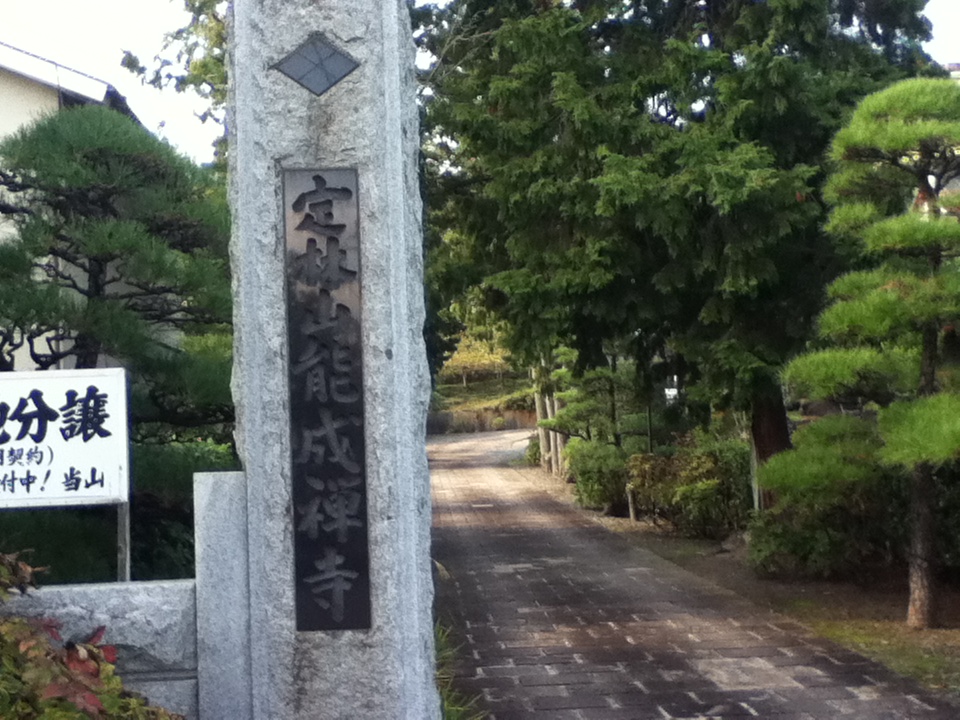 金手駅北東の路地沿いにある臨済宗妙心寺派のお寺。貞和年間(1345-1350)に創建された。路地横に石造の山門があり、参道の坂道を登っていくと、木造の本堂がひっそりと立っている。お勧めの点は、境内はあまり広くないが赤穂浪士・大野九郎兵衛の墓や芭蕉の「名月や 池を廻りて 夜もすがら」の句を刻んだ碑があり本堂周辺に高い木々が並び静かで境内にいると心癒されること、参拝すれば願い事が叶うかもしれないこと、寺院(神社)内の掲示物などを読むこと等により能成寺の教義や特徴について理解を深められることである。訪問時の感想は、境内には他に誰もいなく静かで本堂や木々をゆっくり見たり参拝できて良かった。