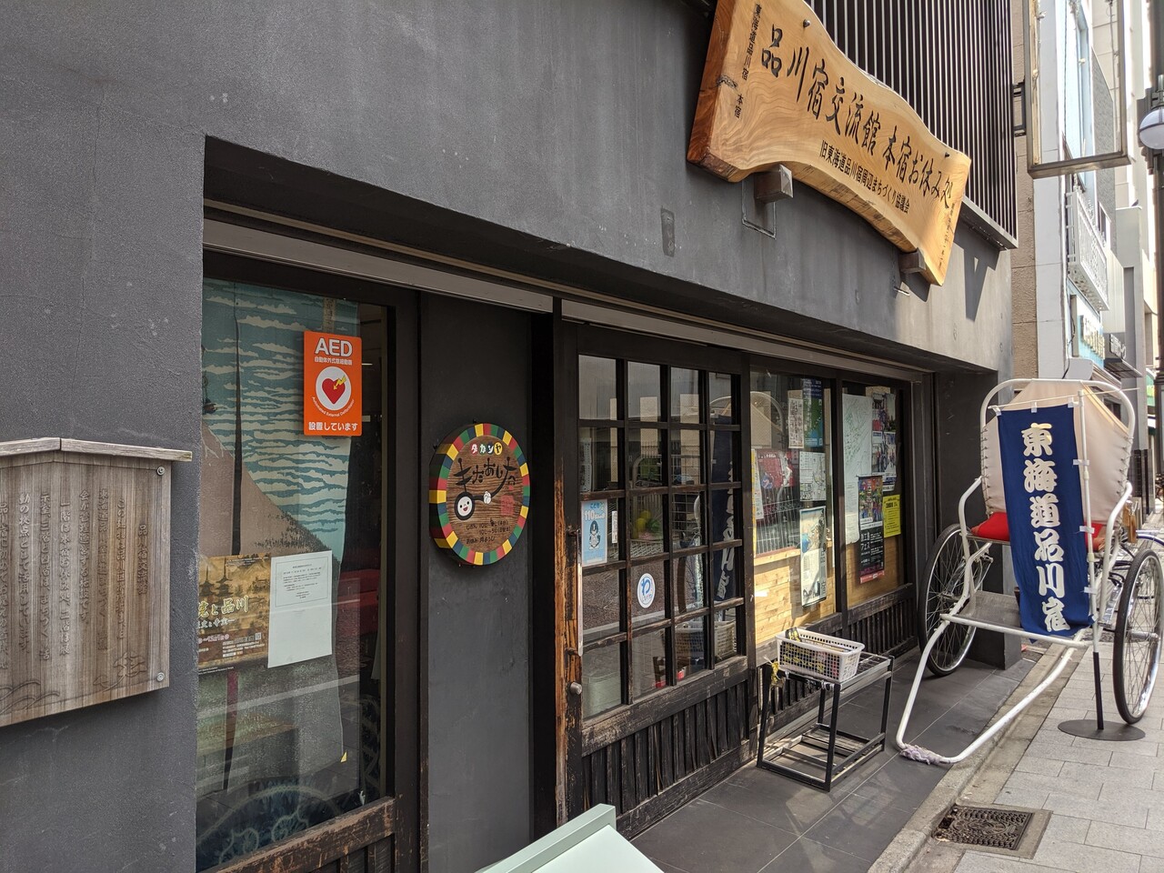 品川宿交流館は、北品川の商店街にありました。京急新馬場駅から徒歩5分位のところにあるので、北品川を散策する際には立ち寄って周辺の観光スポットなどの情報収集をすることができる便利な施設です。また、施設内には駄菓子コーナーもあるので、懐かしい駄菓子を買うこともできます。