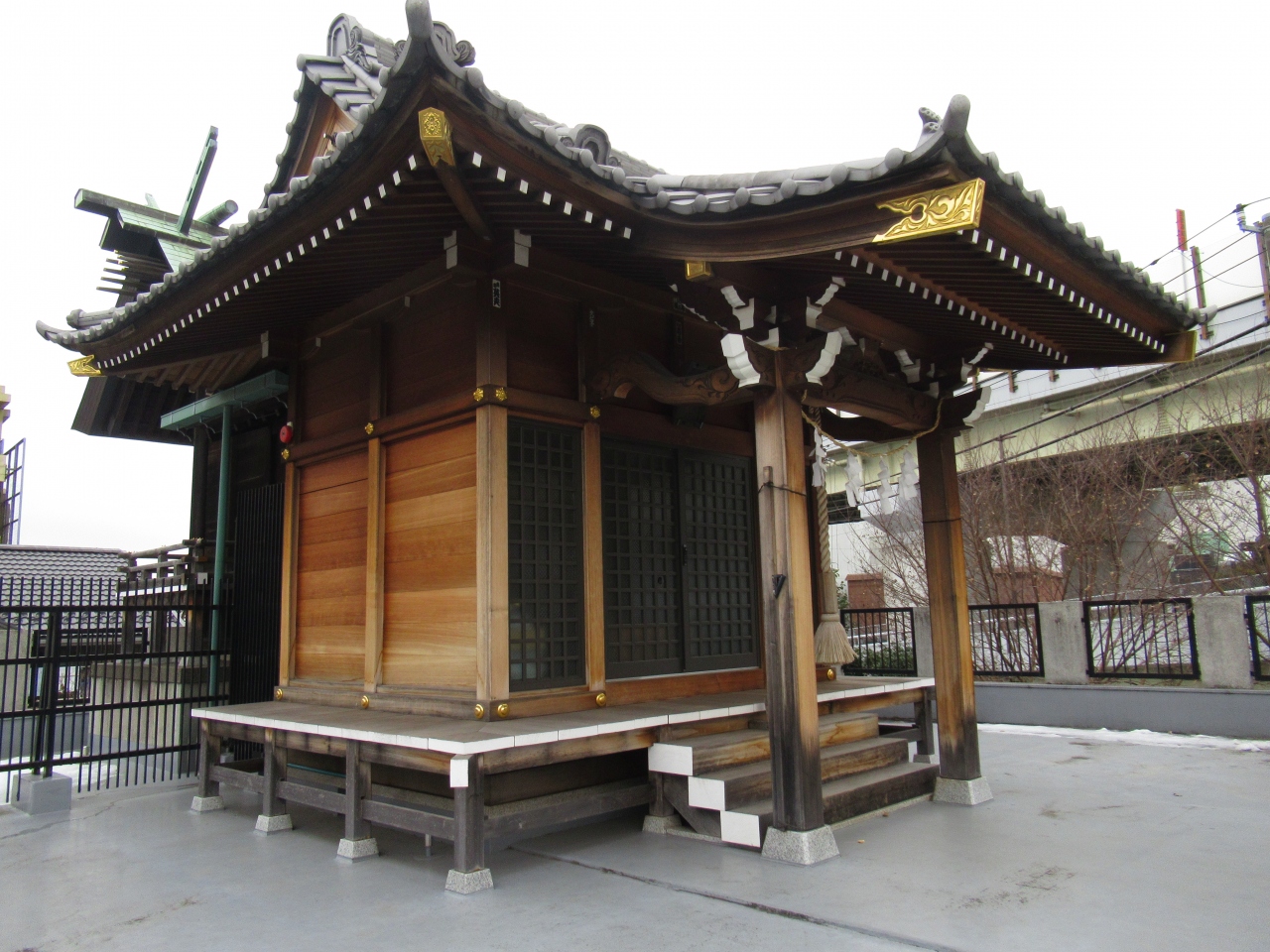 この神社の特徴は平屋建ての民家の屋上部分が拝殿ということ。