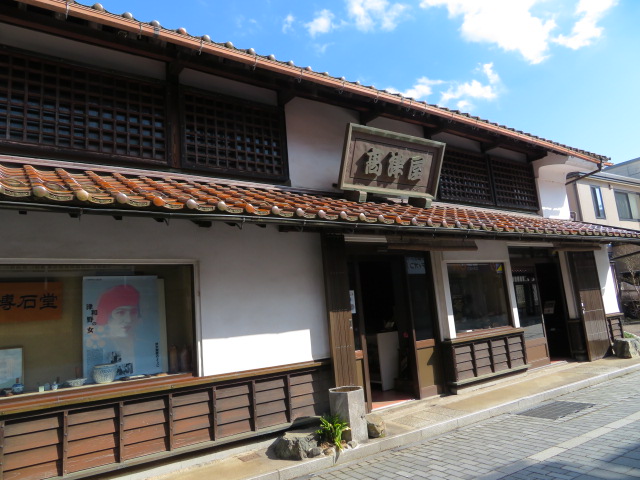 一等丸というお薬で有名な薬問屋さんです。外観が江戸時代さながらの造りで、時代劇に出てきそうな雰囲気です。内部には、おそらく昔は薬をここに入れていたのかなという古い引き出しがあり、タイムスリップしたようでした。