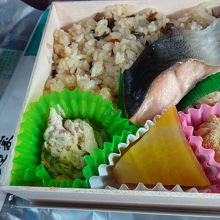 小ぶりですがおこわと塩ジャケ、小さなきな粉のおはぎも入っていて、細やかな心遣いが嬉しかったです。
