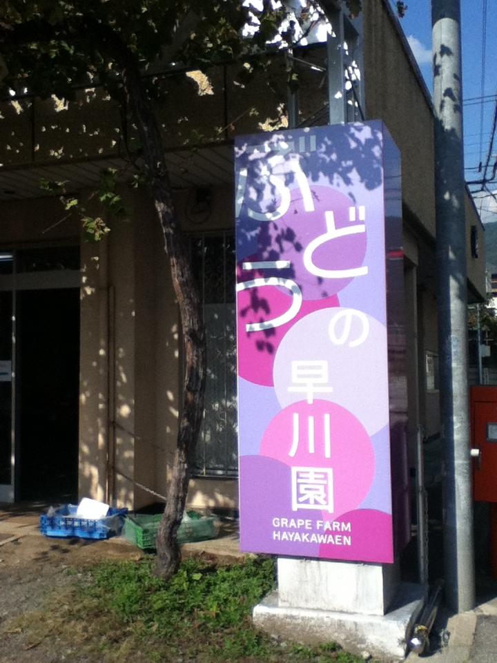 ぶどうの早川園は酒折駅北西の路地沿いにある。久しぶりに訪問した。お勧めの点は、早川園はこの周辺で最大のブドウ狩り専門園であること、世界の40種類以上のブドウを集め栽培していること、料金は狩ったぶどうの重量によって決まることである。訪問時の感想は、久しぶりにブドウ狩りをしたが、お客さんは多くなかったものの様々な種類のブドウを見たり取ることができ訪問して良かった。また、美味しかった。