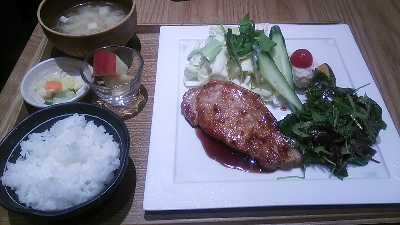 いわて純純グリーンソースハンバーグはハンバーグとグリーンソースのハーモニーが良く、いわて純情豚のはちみつローストは肉の食感が良く、美味しく頂きました。