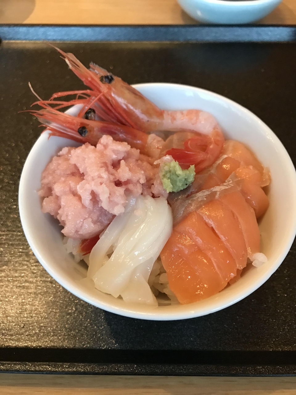 特に良かったのは、自分で作れる海鮮丼です。いくら、イカ、サーモンなどから自分で好きな具を選んで、自分好みの海鮮丼を作ることが出来ます。漁港の町・境港ならではだと思いました。