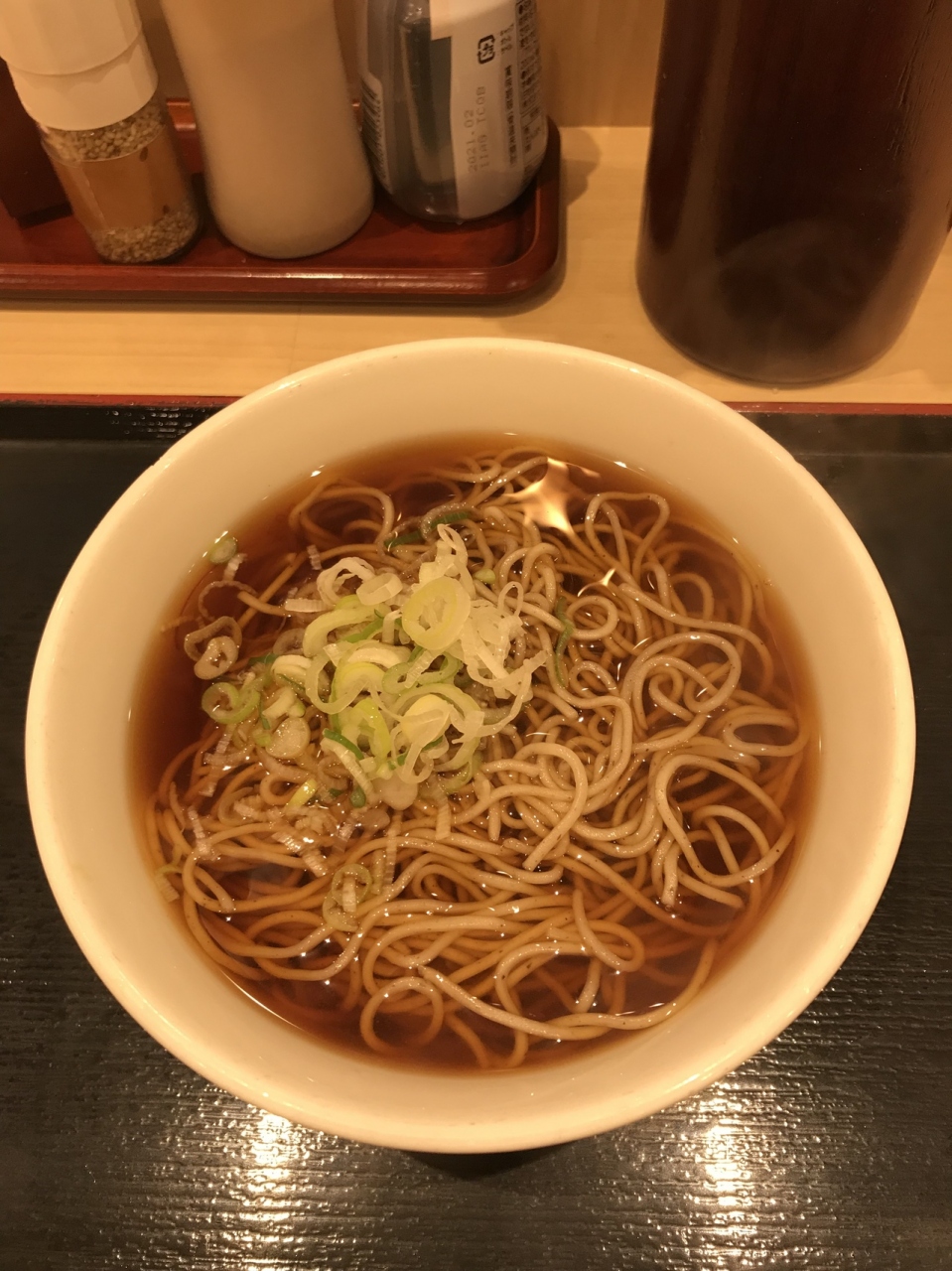 秋葉原駅の昭和通り口改札出たところにある、いろり庵きらくさんです。立ち食いスペースなほかカウンター席のお店で、サラリーマンなどが多いです。かけそばが320円からになります。お蕎麦の量はまあまああります。