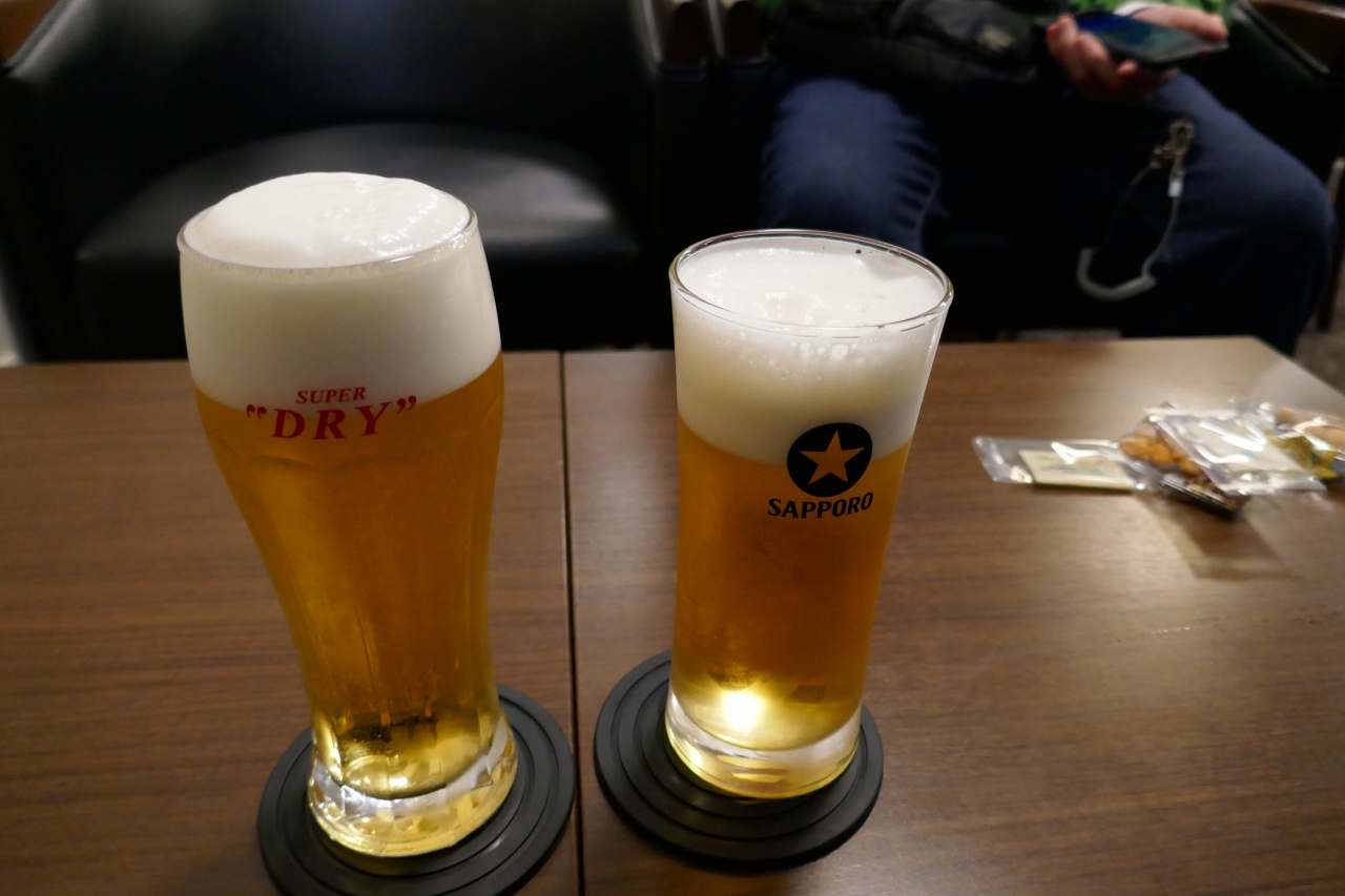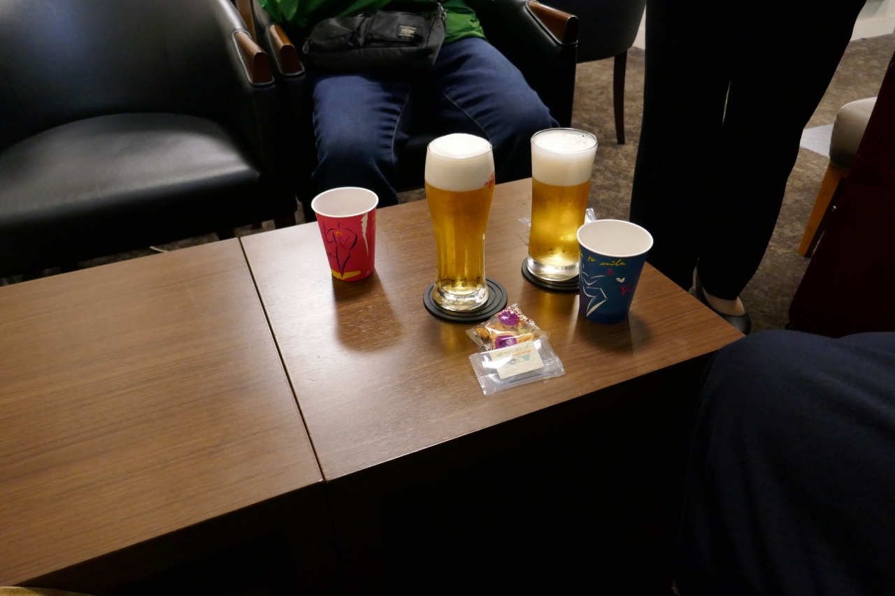 早朝、ラウンジが開くのを待っていました。開いて直ぐに入って最初の客でした。楽天カードでビール2杯無料です(1杯は妻のでしたが)。入場はプライオリティパスで息子もジュースを飲んでいました。直ぐに第3ターミナルに移動だったのが残念。