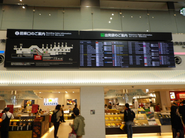 博多観光で市内へは地下鉄まで到着口から5分ほど。少し歩きますが分かりやすい案内表示あり。空港館内は11月現在工事中で縮小営業ですがレストラン、お土産店も多く明月堂お菓子の博多通りもんはおススメです。検査場から羽田行搭乗口は5分ほど。