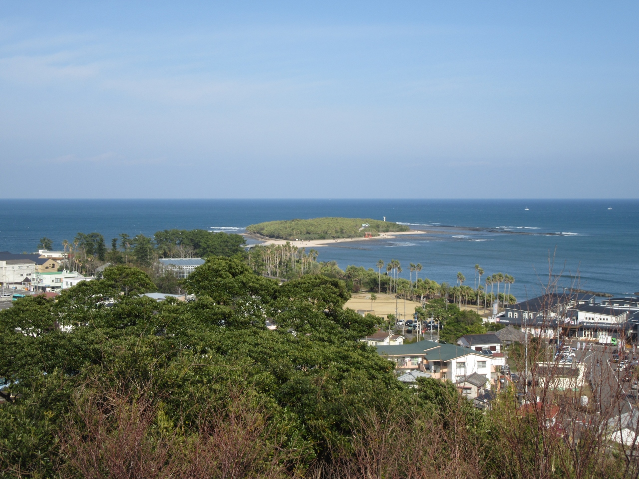 青島は、宮崎市内から車で南下し30分ほどの場所にある小さな島です。市内から鵜戸神社を目指す途中でちょっとだけ立ち寄りました。南国だけあって島内は亜熱帯植物に覆われ、縁結びで有名な青島神社があります。海岸線はこの地域特有の階段状の洗濯板のような奇景が広がり、宮崎市街に近い場所としては最も見ごたえあるスポットだと思いました。