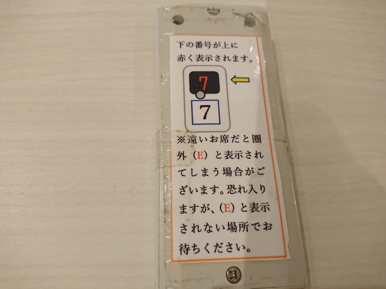 阪急三番街の梅田フードホールにあるこのお店は、店頭でお金を払うと、写真のような、番号のついた機械を渡されます。