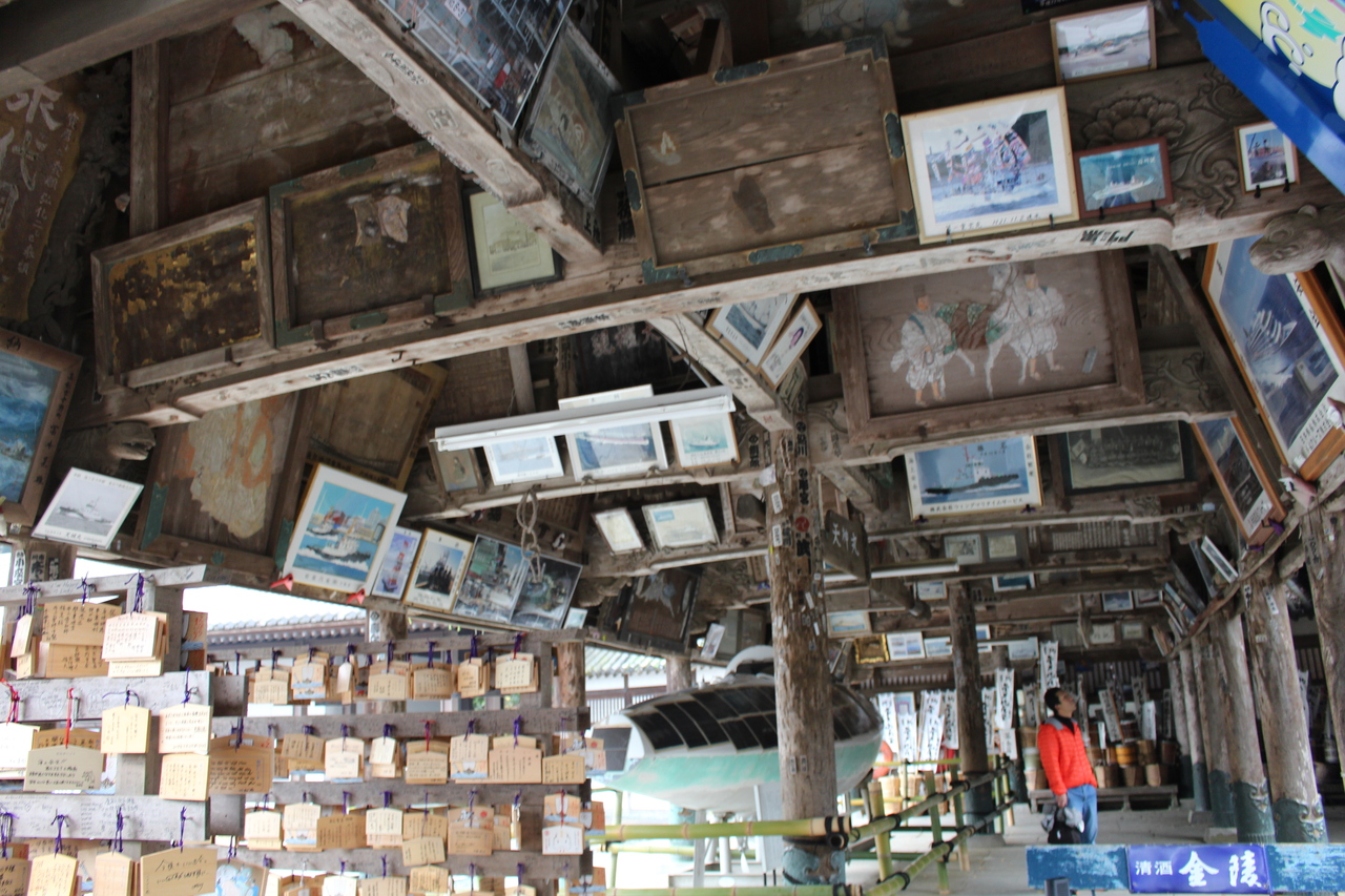 香川県の観光名所、こんぴらさんを登りきったところにあるのが絵馬堂。航海祈願をした絵馬がたくさんありました。造船会社や船などのエンジン会社など面白い、珍しい絵馬がたくさんありました。船そのものもあり、楽しめました。