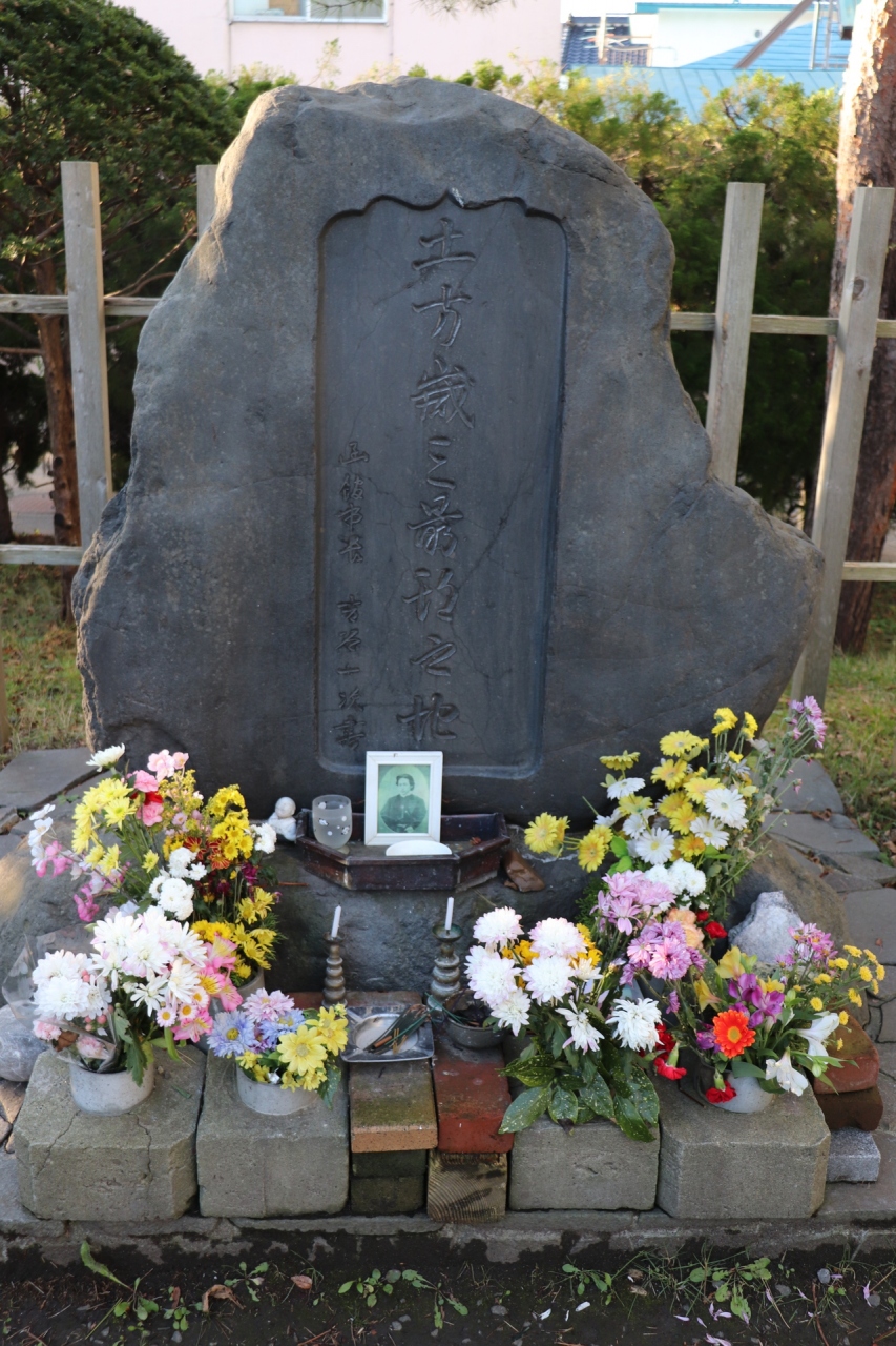 JR函館駅から徒歩10分くらいの住宅街の中にありました。土方歳三が銃弾に倒れたとされている一本木関門跡に近い若松緑地公園に建っている地碑です。地碑があることや花が備えてあることからも土方歳三の人気を感じることができます。歴史を感じることができました。