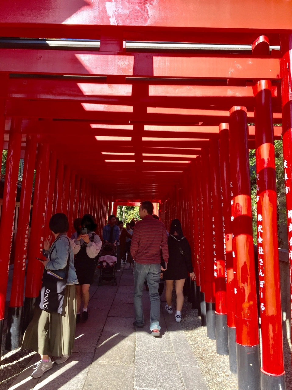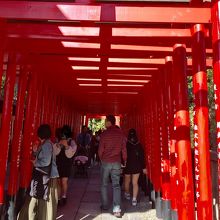 ハートの絵馬の前と連なる赤い鳥居の中は写真を撮る人でいっぱいでした。
