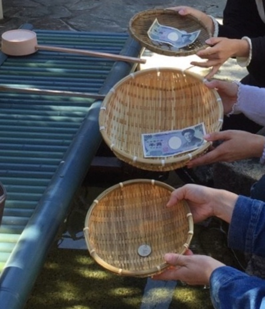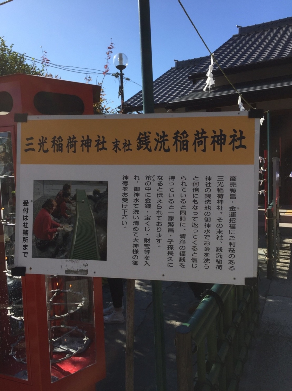 末社銭洗稲荷神社もあり、受付でザルとロウソクをいただいて、境内の御神水でザルにいれたお金を「銭洗い」すると、そのお金が何倍にもなって返ってくるそうです。
