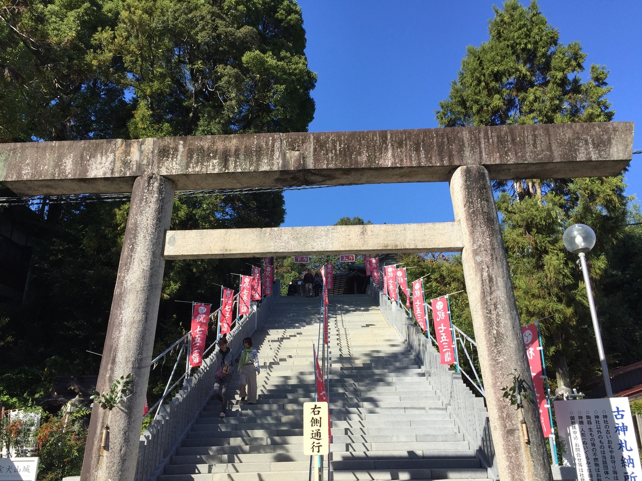犬山城下町を通って、国宝の犬山城のふもとに三光稲荷神社と並んでにあります。石段を上ると拝殿です。
