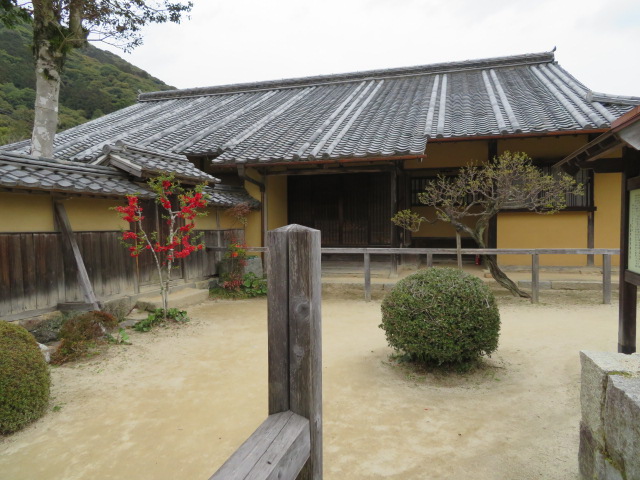 こちらの家は、国の重要文化財に指定されている江戸中期の中流武家屋敷です。岩国独特の建築様式ということで非常に興味深いものです。屋根の勾配がかなり急で、所々、屋根の長さが違っているという非常に珍しいものでした。