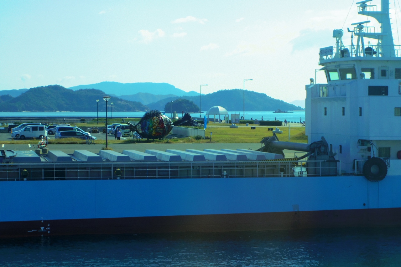 宇野のチヌは昔見に来たことがあり、今回は船からも見えました。瀬戸内国際芸術祭2019の作品でもあります。会期前の今年の春に宇野のコチヌも一緒にリニューアルされたそうです。作者は淀川テクニックというアートユニットです。