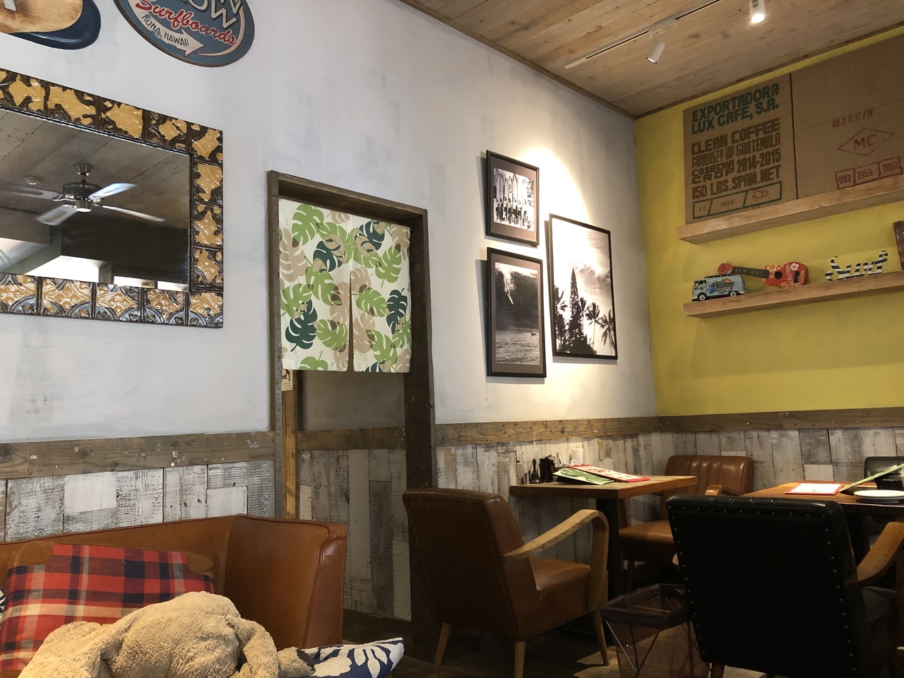 所沢のバイパス沿いにあります。店内、メニュー全てがハワイアンでおしゃれなレストランです。ソファー席やテラス席があるのでゆっくりできます。ただどれも値段が高いので食事とドリンクを注文すると一人2000円はしてしまいます。