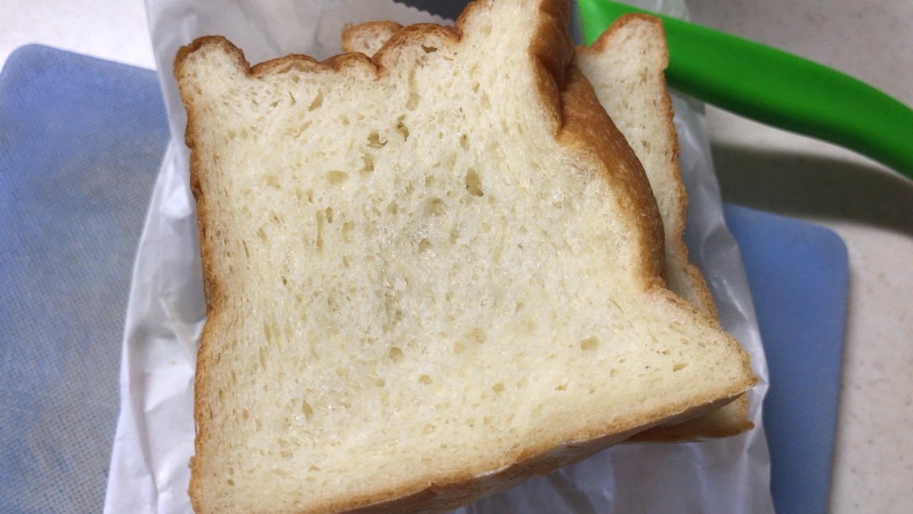 そんなこんなでやっと食パンを入手。その日の夜、焼かずに食べてみたらふんわりした食感で生地がほんのり甘い。かなり私の好みでした。ただかなり小ぶりで350円(うろ覚え)は私にはちょっと贅沢かな。でも本当に美味しかった。