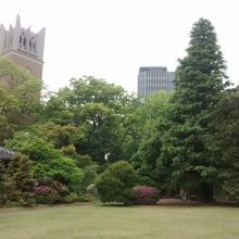 椿山荘、細川庭園、甘泉園など、大隈庭園の近隣には、是非見たい日本庭園が集中しています。大隈庭園内には、広い芝生のエリア、池やせせらぎなどもしっかりあって、背後の早稲田大学の建物群と右とな調和をしています。