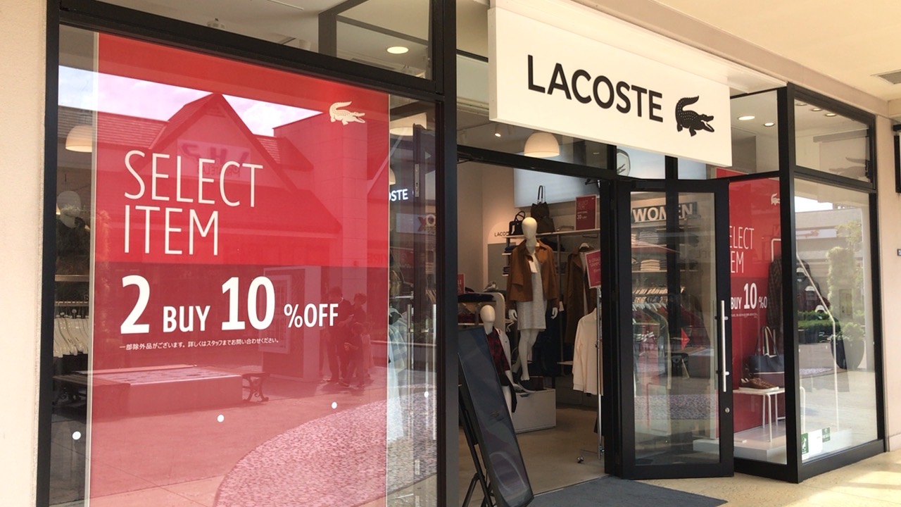 木更津のアウトレットモールに入っているラコステのショップです。ワニのマークのワンポイントで昔から親しまれているカジュアルブランドです。こちらのお店は2点買ったらさらに10%引きのセールをしていました。アウトレット価格が更に安くなるのは嬉しいです。