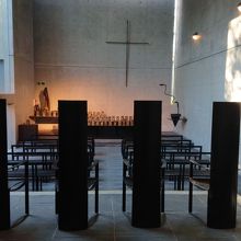 風の教会の受付から教会までの斜面に作品があり足下が悪いので歩きやすい靴で行くことをおすすめします。教会は安藤忠雄の教会三部作の一つ、打ちっぱなしのコンクリートの壁がある。教会と言うが現在は貸しホールや撮影場所として貸し出されている施設です。通路に作品がありました。