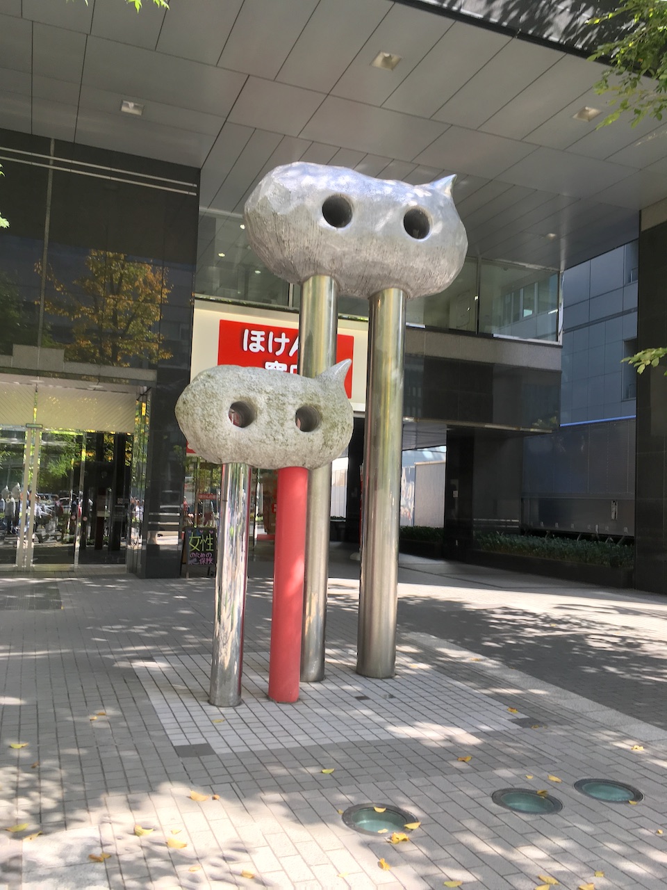 みずほ銀行を行き過ぎたところに、親子のように並んだ、目を引くパブリックアートがありました。