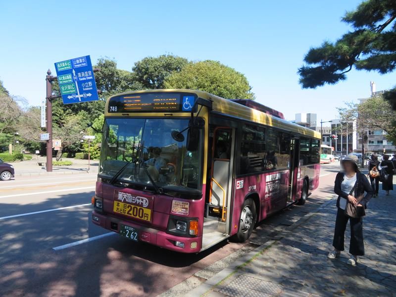 兼六園シャトルは小型バスなので混雑する区間もあるので近江町市場や尾山神社など一般路線バスが頻繁運転されているのでうまく組み合わせて使うと効率よく観光できます。
