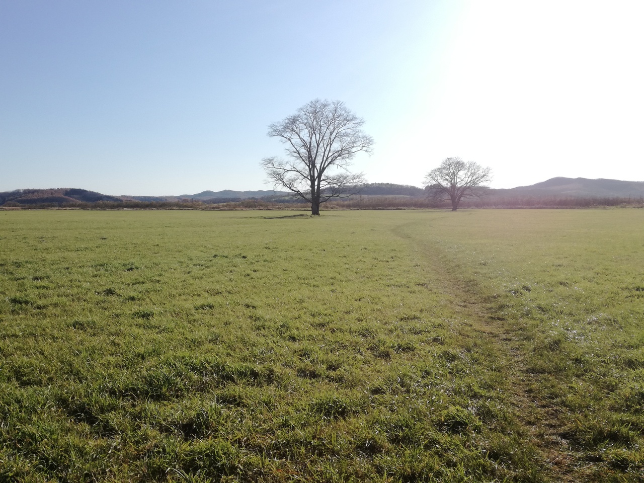 周りには何もなく、2本のはるにれの木が仲良く並んでいる姿は美しく、思わず写真を撮りたくなります。