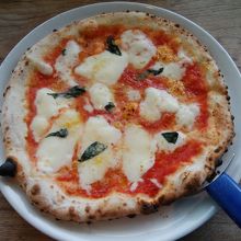 ピザはモチモチ薄めの生地にフレッシュなトマトソースとチーズ、バジルがマッチしてぺろりと行ける美味しさ。