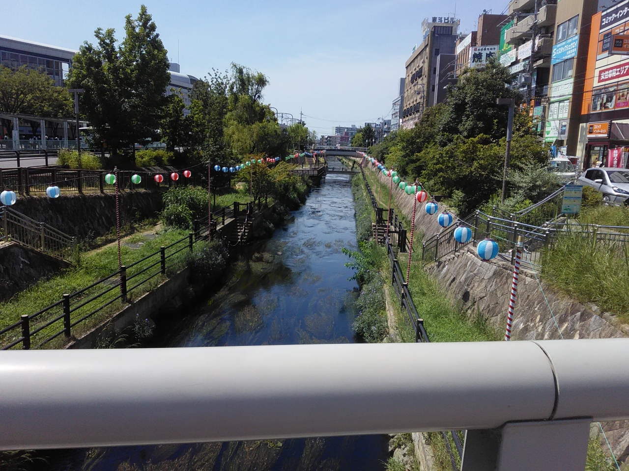 京阪電鉄:寝屋川市駅前の川際の公園です。