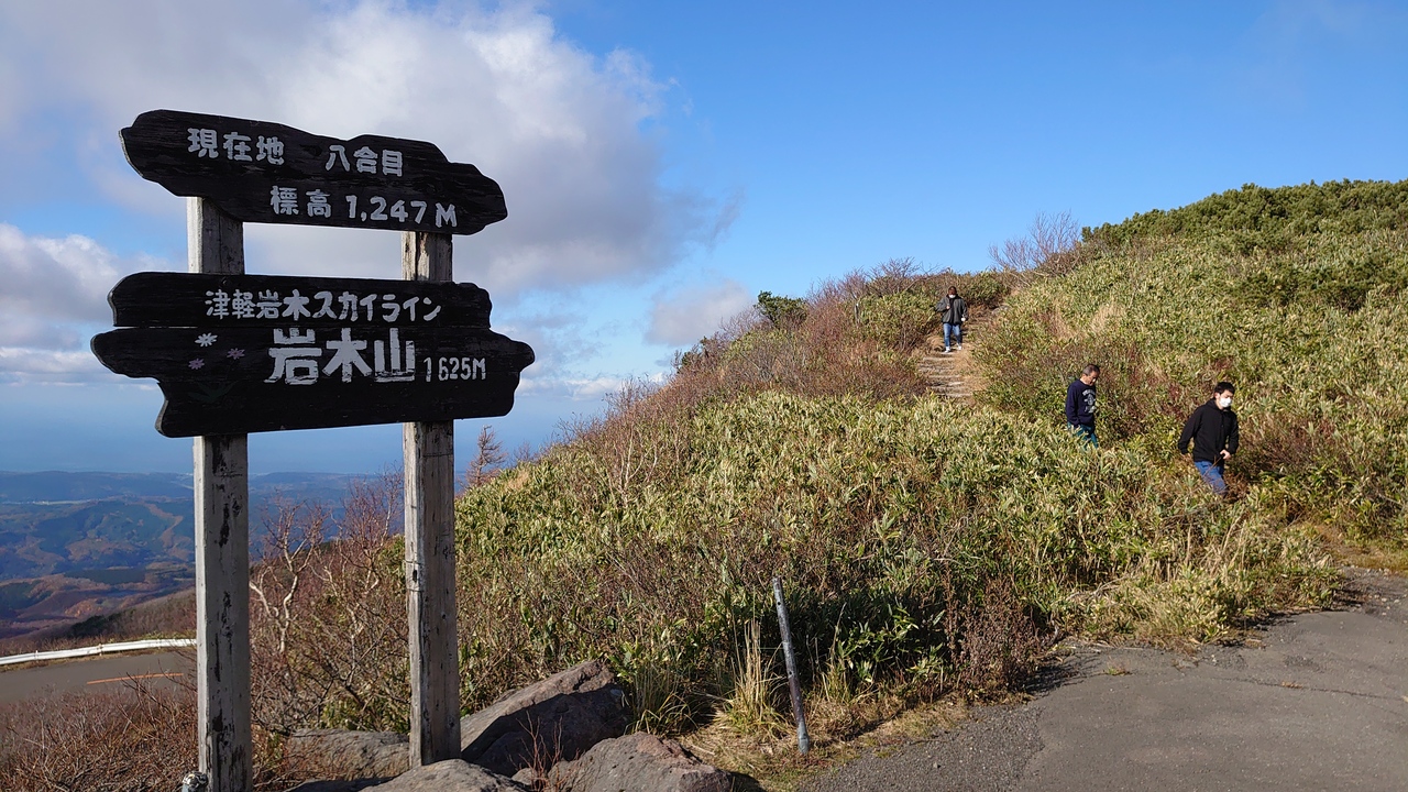 八甲田山から眺めたときに美しい山体だと思っていましたが、初めて車で8合目まで登ってみました。山麓にはリンゴ畑が広がり、弘前らしい眺めを楽しめました。8合目は寒かったですが、津軽西海岸がよく見えました。