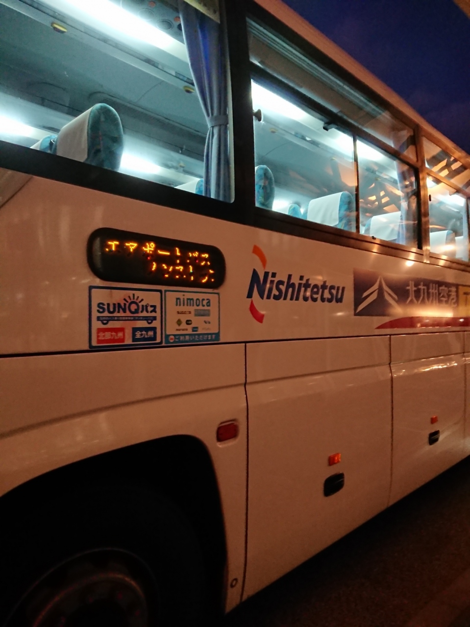 空港の正面出口を出て左手にある1番のりばから小倉駅に向かうエアポートバス。ICカードが使えるのでバスチケットを買う事もなく乗車できて便利でした。乗り降りの際に「ビッ」とタッチするだけ。6:20発はまだ到着便もない時間帯…お客様は2名でした。