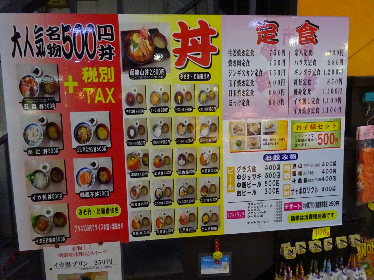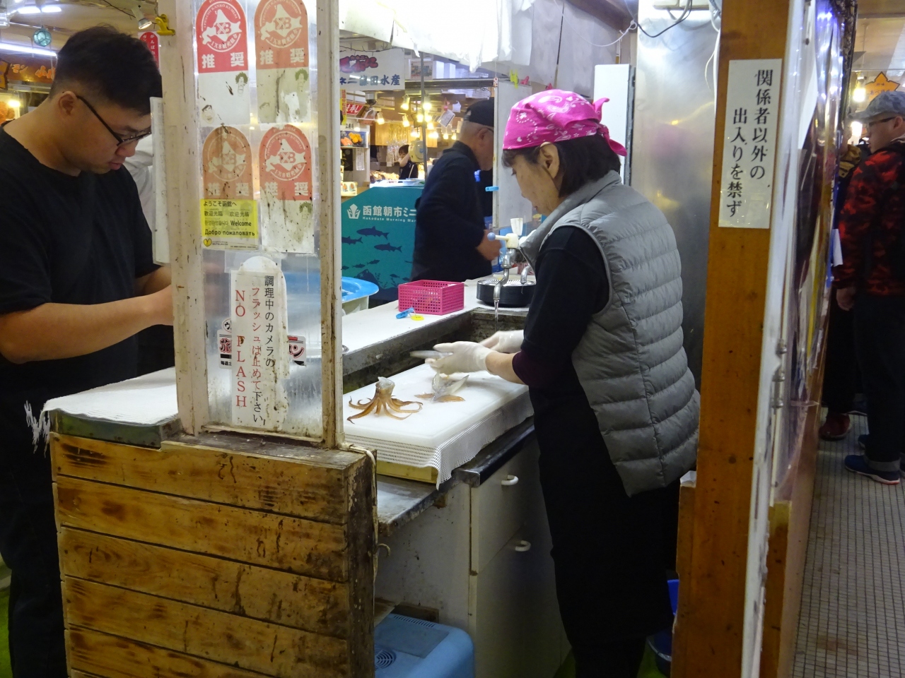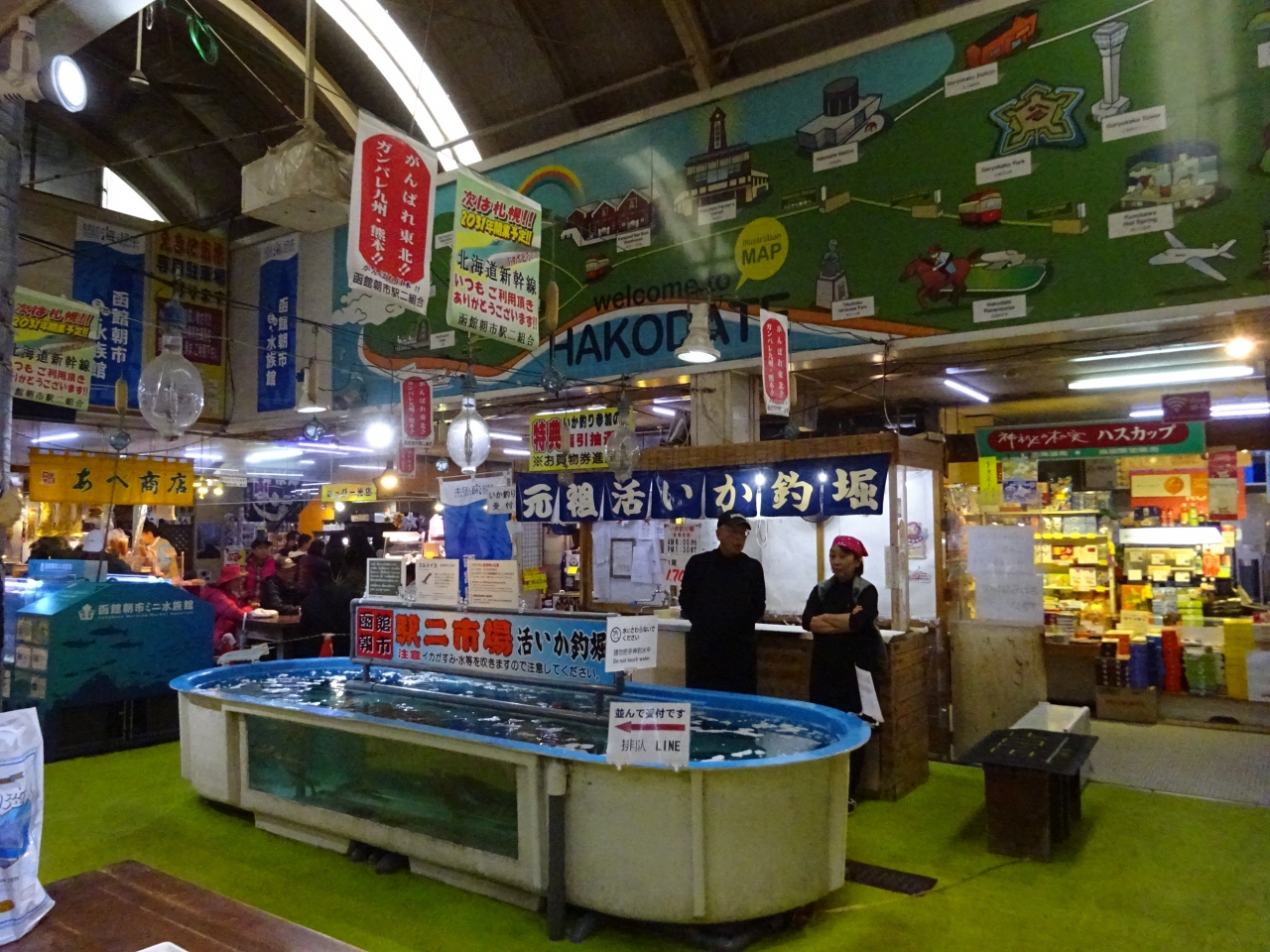 ふらっと新幹線に乗って函館に行きました。函館といえばJR駅から近いところにある朝市が有名です。おそらく観光客を対象とした集合商店だと思いますが、海の幸やらたくさんのものが手に入ります。イカのイケスがあって釣り上げたものをその場で刺身で食べるところもあります。海鮮丼のお店が多いです。どれもおいしいです。