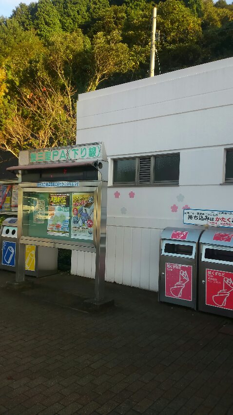 今治から松山までレンタカーで戻る途中、松山道の下り線パーキングエリアにトイレ休憩で立ち寄りました。高台にあって名称から春には桜がきれいな場所かもしれませんが、この時期はトイレ施設だけの静かなパーキングエリアでした