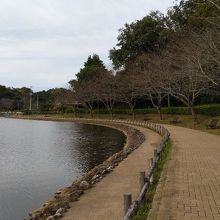 坂田が池を取り囲むように散策路が設けられていて敷地内はかなり広め。房総のむらを含めて付近は豊かな自然環境で指定区域では釣りをする人もいた。