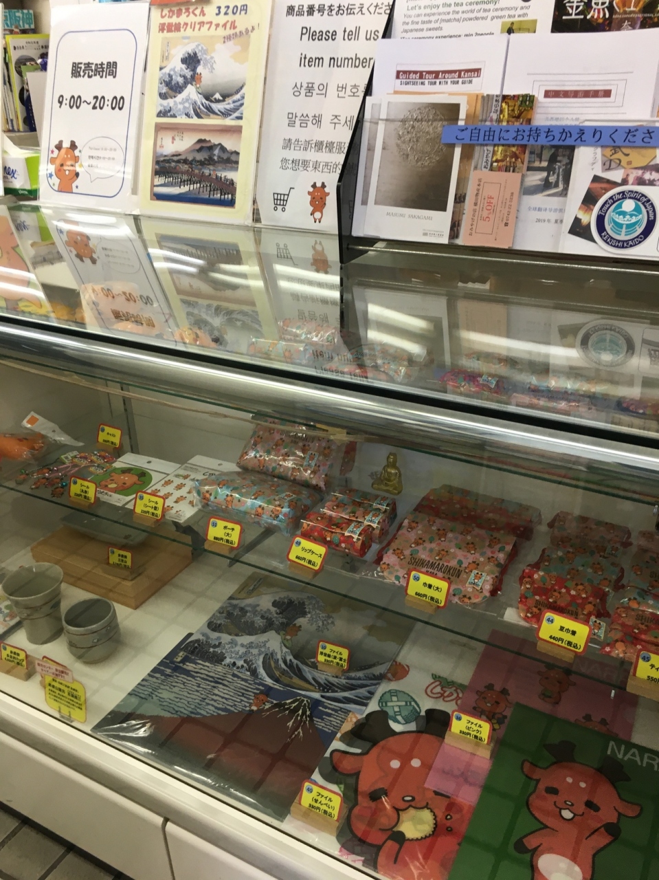 近鉄駅のビルの1階にあり、細いカウンターには4人の案内人がいて、外国人のお客さんが多かったです。多国籍のパンフレット、チラシ類の他に土産品もたくさんありました。セントくんの人形がたくさん置いてありました。