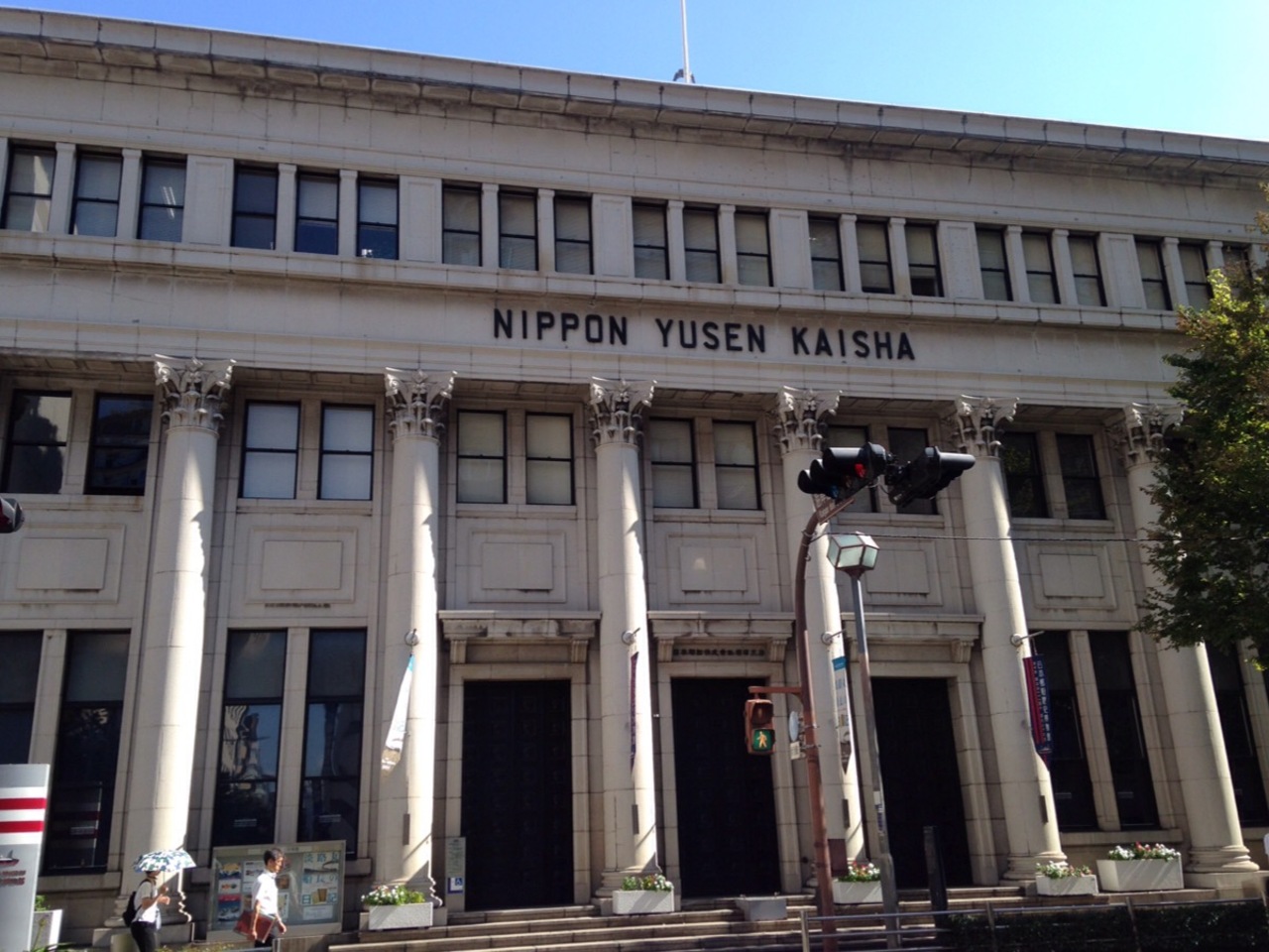 海岸通りにあります。上部の装飾も目立つギリシャ風の柱が立ち並ぶ神殿のような建物で一枚の写真に収めるのが難しいほどの広がりがあります。横浜には往時の銀行建築のような建物が多いですがここが一番迫力がありますね。
