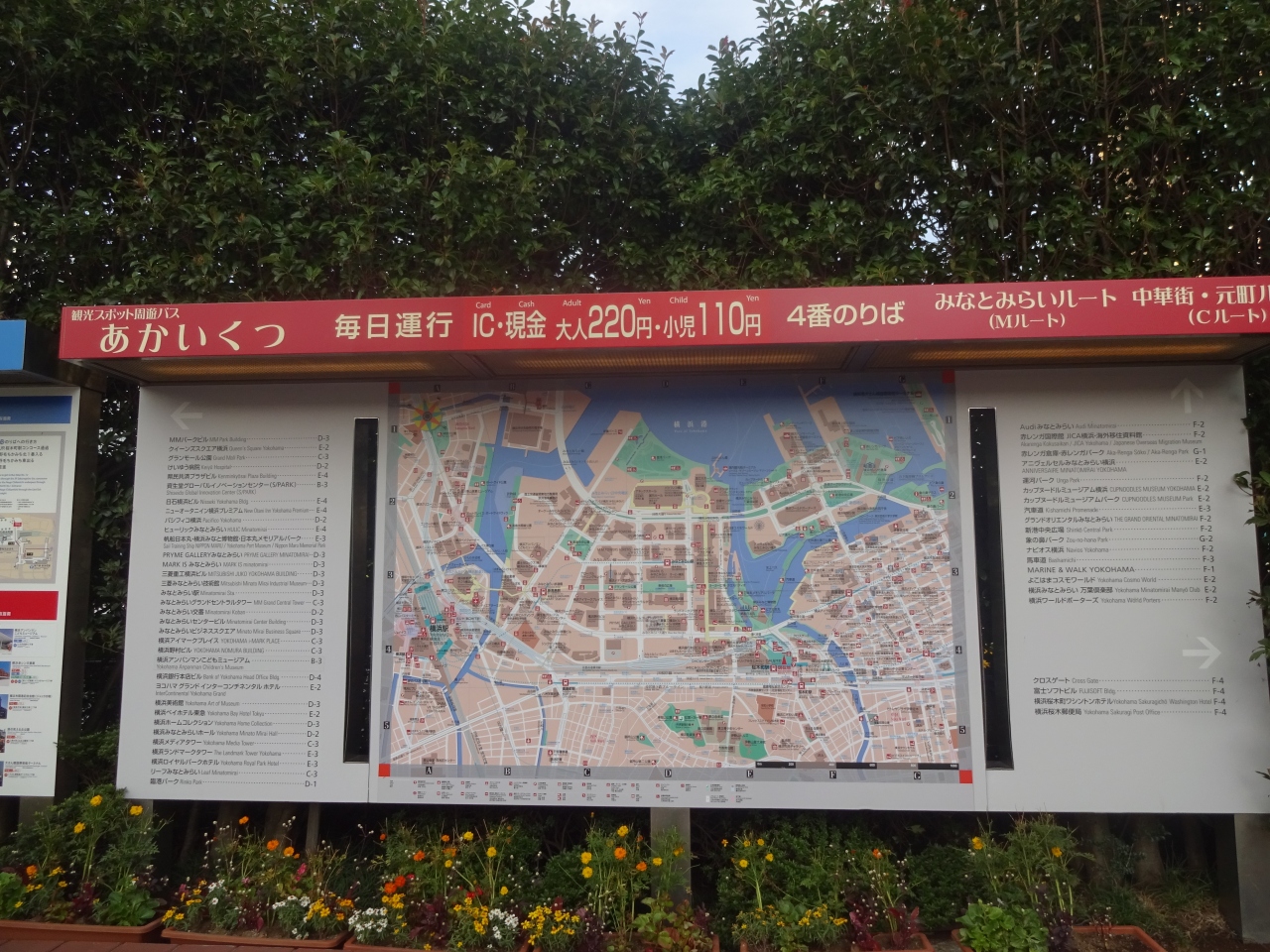 山下公園から桜木町駅まで、赤い色のレトロバスに乗った。