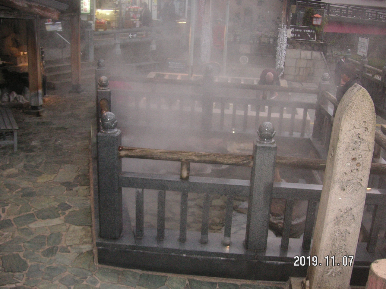 平日ということで、荒湯も河原の足湯も人の利用は少数でしたが、スーパーで買った玉子15個をネットに入れて、中の湯壺に13分間漬けて、温泉卵が出来上がり、湯壺の説明では15分と記載がありましたが、13分の方が良いと地元の妹に聞いていたのでそうしました。塩をかけて食べたがとても美味しかったです。足湯にも浸かったが温度が低かったです。