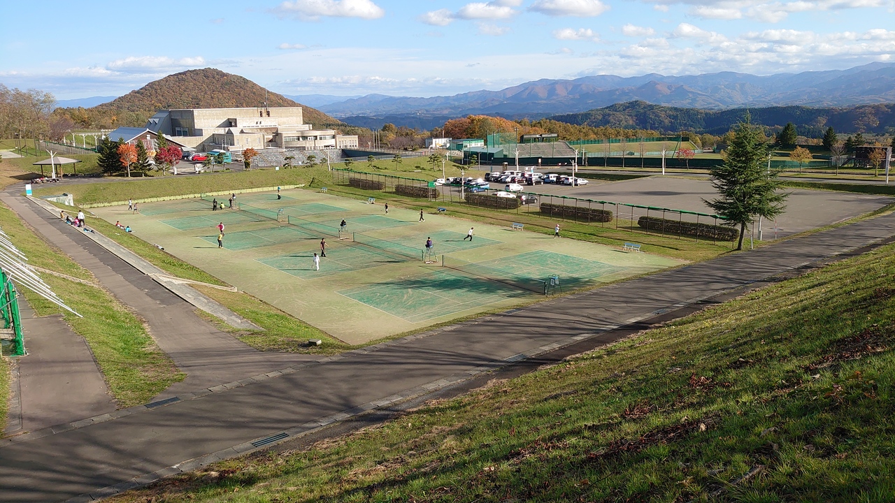 岩木山麓にある運動公園です。野球場には誰もいなかったものの、テニスコートにはスポーツの秋を満喫する若者が溢れていました。クラブ活動でしょうか。テニスに集中できないような絶景が目の前にあり、恵まれた環境だと思いました。