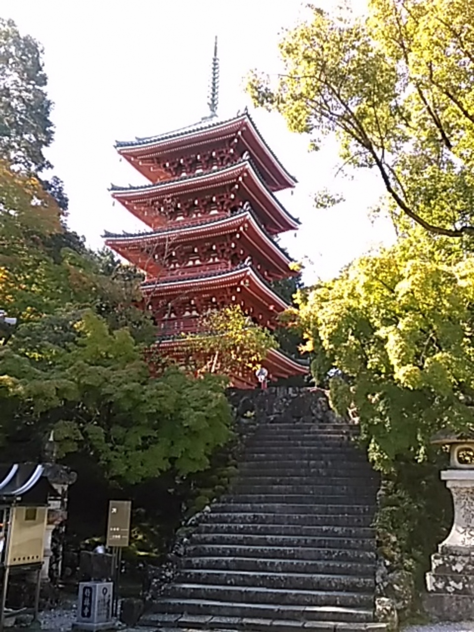 五重の塔は、仁王門をくぐり石段を登り左斜め前進むとあります。朱色の五重の塔は、周りの木々の緑との対比が綺麗で、境内でも一際、存在感があります。塔は明治時代に台風により倒壊して、昭和55年に鎌倉時代初期の様式をもつ五重塔として再建されています。