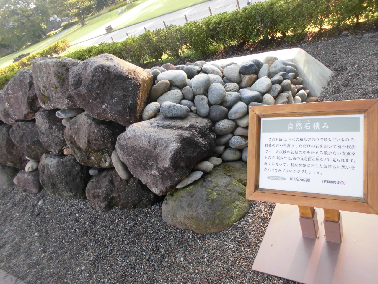 石垣はお城には必ずあるもの。それ自体はたいして珍しくありませんが、この金沢城ではいくつもの種類の石垣があり、それを丁寧に紹介しているところが良かったです。粗加工石積み、自然石積み、切石積みと初めて知った名前もあったので知れてよかったです。