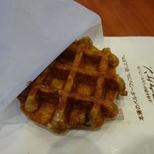 店の前を通ると甘い香りがしてきます。秋なので栗が入ったワッフルを買ってみました。栗の粒が生地に練りこんでありました。栗の香りや味もちゃんとしました。