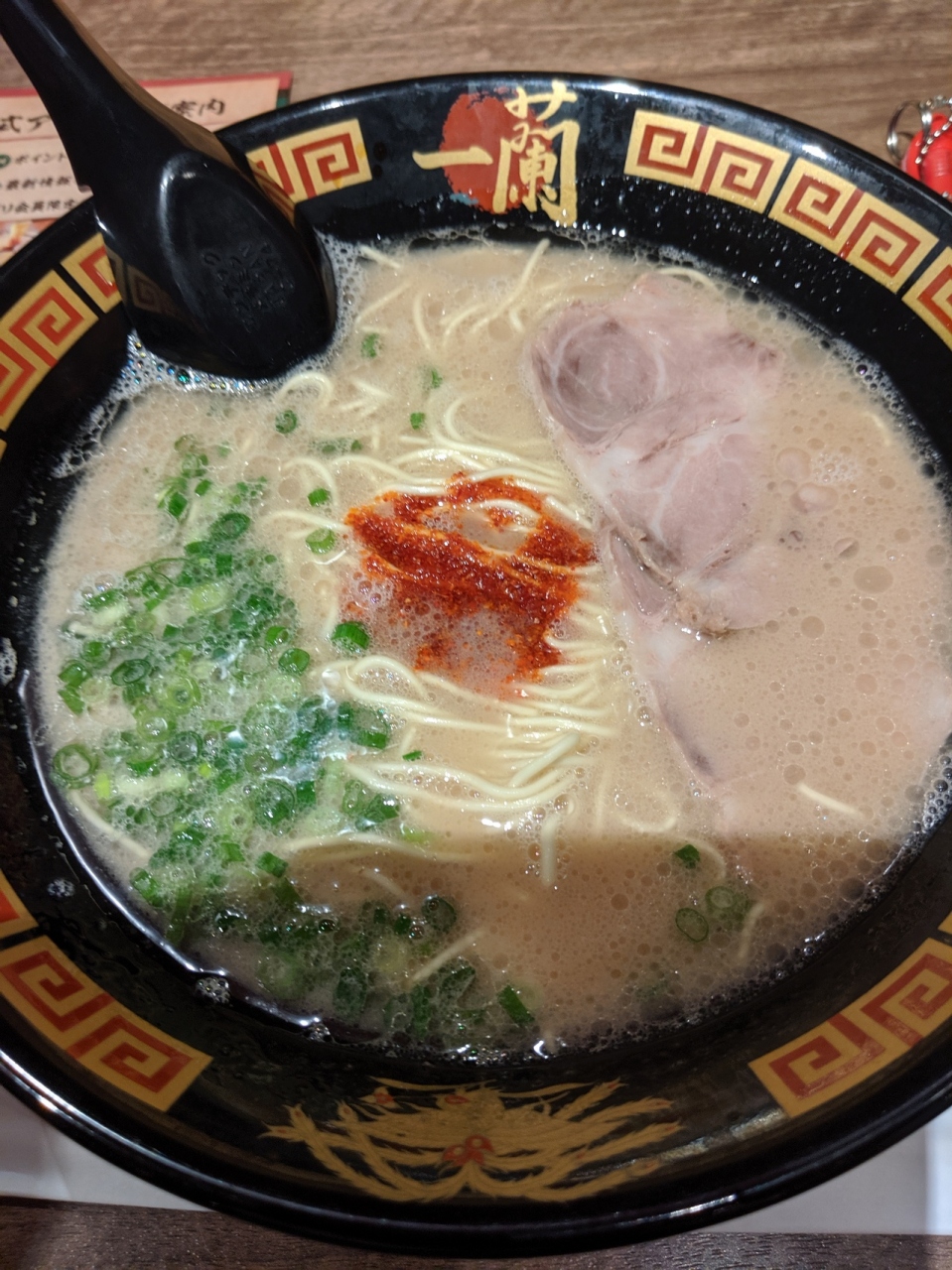 有名なとんこつラーメンチェーン店ですが、こちらは国道16号線沿いにあり駐車場完備の大きな店舗、そして24時間営業のお店です。食券を買いひとりひとり仕切りのあるカウンター席へ、味の濃さ、麺の硬さ等選べるシートに記入して店員さんへ。こってりだけどどこか品のあるとんこつスープに固めの細麺の美味しいとんこつラーメンです。