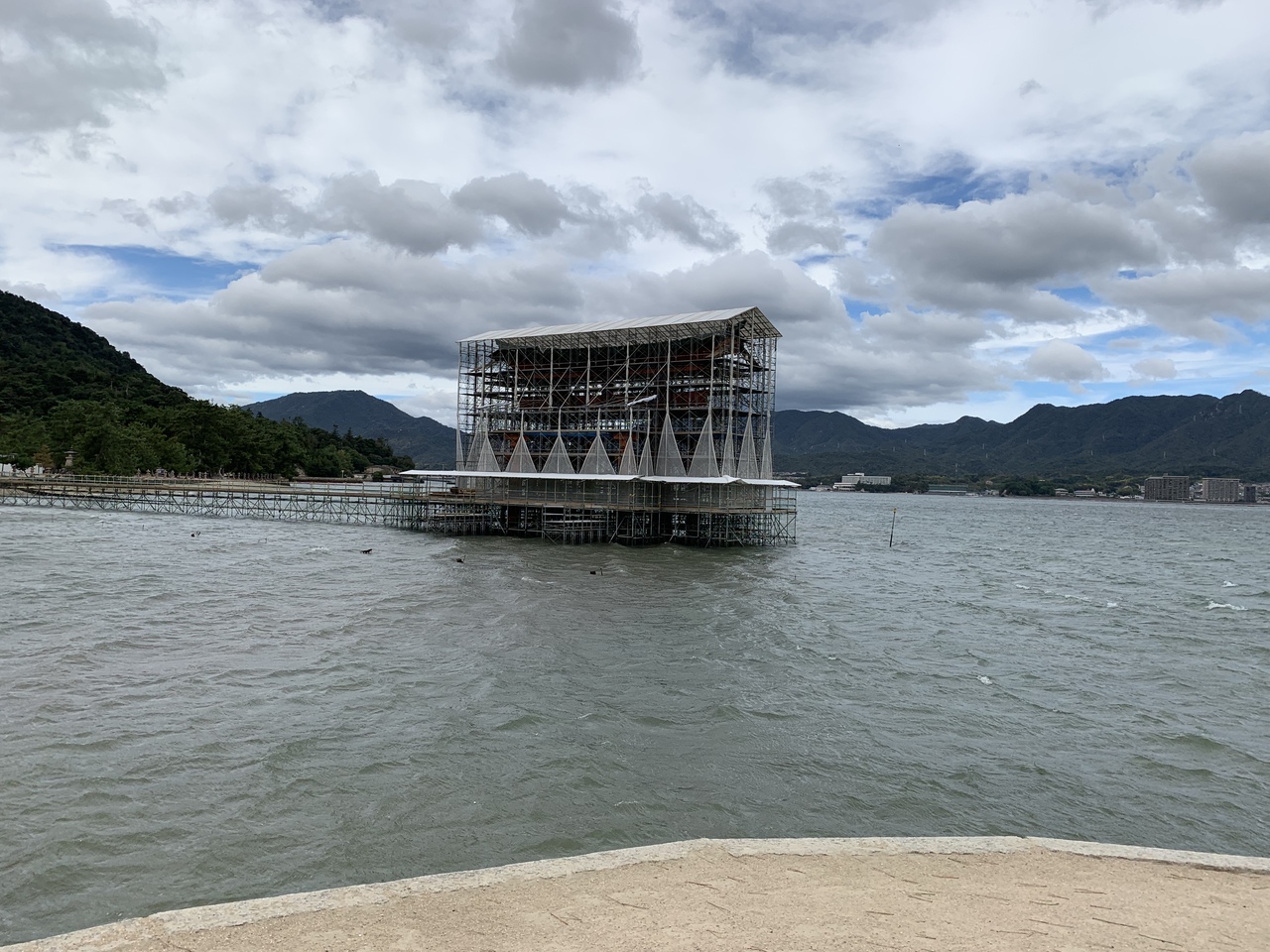 広島にある宮島には厳島神社がありこちらの大きな鳥が有名です。今回初めて行きましたが、残念ながら部分修理中で全体が囲われていました。塗装の乗り直しなどをされていたようでお店の方もにも残念だねと声をかけていただきました。また訪れたいです。