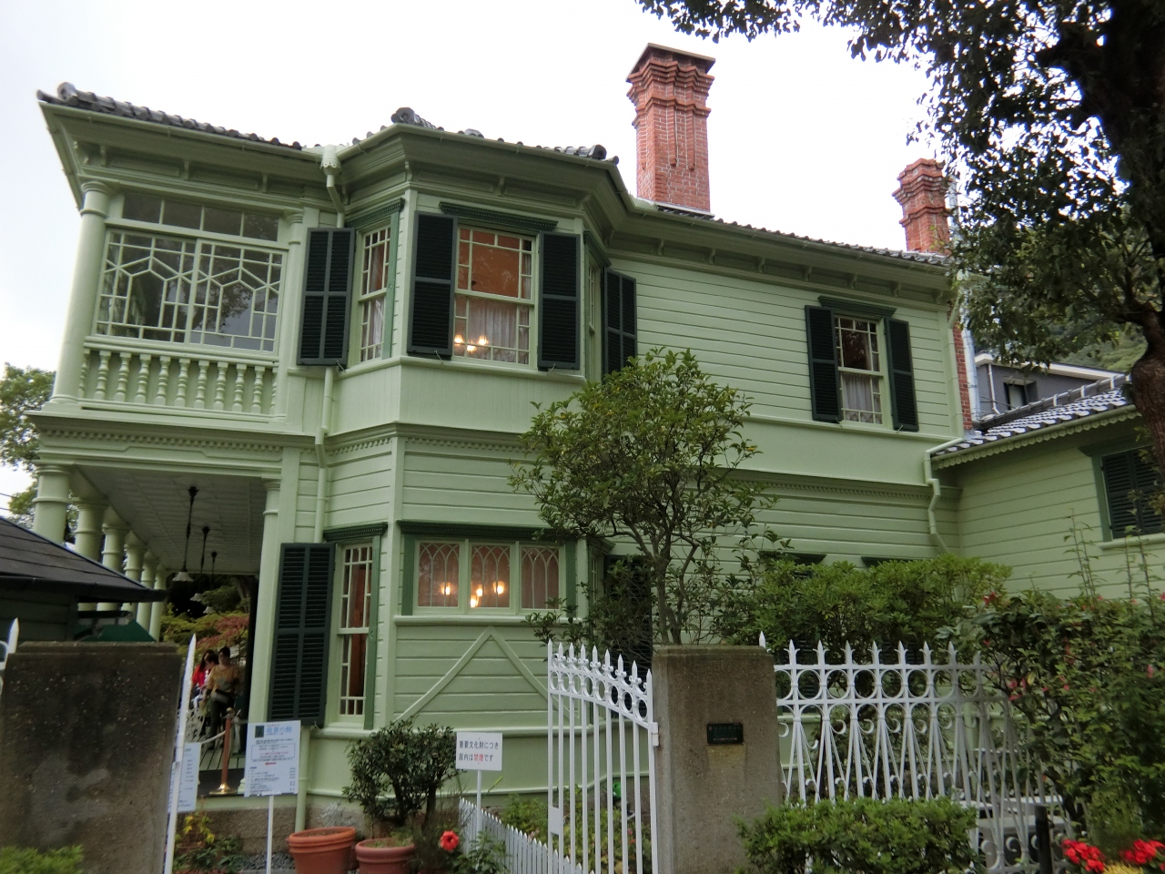 神戸といったら、異人館がたくさんあります。異人館に行くには上り坂を上っていかなくてはならないので大変です。坂を上っていくと、淡いグリーン色でコロニア風の素敵な建物が見えてきました。これが萌黄の館で、重要文化財になっています。アメリカ総領事館ハンターシャープ氏の邸宅として建てられたものです。グリーンのさわやかな色がいいですね。