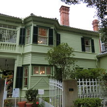 淡いグリーンの素敵な建物