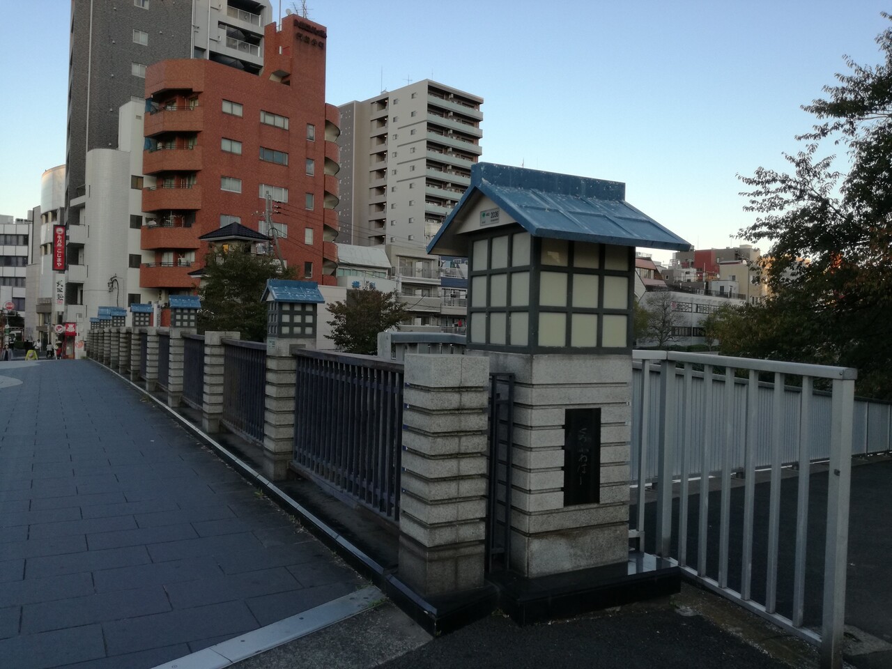 地下鉄門前仲町駅から徒歩5分程、清澄通りに架かる大横川を跨ぐ橋です。清澄通りに架かっているので、交通量はかなり多いです。親柱が灯籠のようなデザインで風情がありました。また、橋上からの景観は、下町情緒があって良かったです。