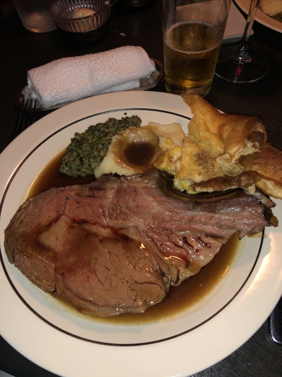 ローストビーフを食べるなら絶対におすすめのお店です。提供の際はワゴンがテーブルまでやってきて、そこで専用スタッフがオーダーに応じて切り分けてくれます。肉厚のローストビーフは柔らく、また程よい加減が絶妙。これを食べたら他のローストビーフはなかなか食べれないかも。付け合わせのマッシュポテトがこれまた良いアクセントになります。